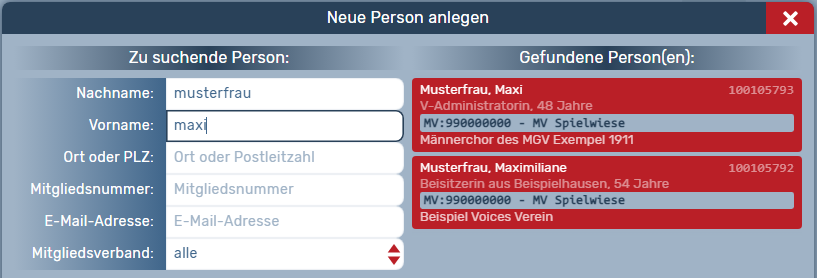 Hinweis: Um beim Hinzufügen einer Person zu einer Organisation durch eine:n Administrator:in die Datenbank zur Vermeidung von Dubletten nach bereits vorhandenen Profilen zu durchsuchen, werden die folgenden personenbezogenen Daten zur eindeutigen Identifizierung angezeigt: Name, E-Mail-Adresse, Alter und Wohnort. Die vollständigen Daten können erst nach Bestätigung durch die Person selbst oder den/die zuständige Administrator:in der "besitzenden Organisation" von dem/der Administrator:in der neuen Organisation eingesehen werden.