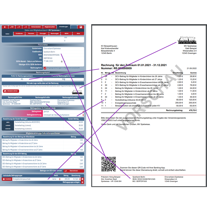 Hinweis: Auf Ebene des Mitgliedsverbands treffen Sie die Einstellungen, die sich auf Rechnungen an Kreisverbände beziehen. Auf Ebene des Kreisverbands treffen Sie die Einstellungen, die sich auf Rechnungen an Vereine beziehen.