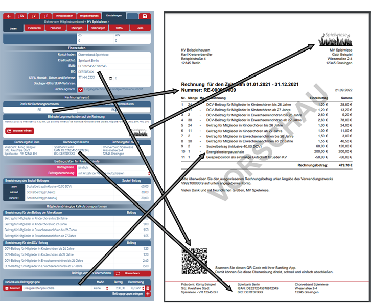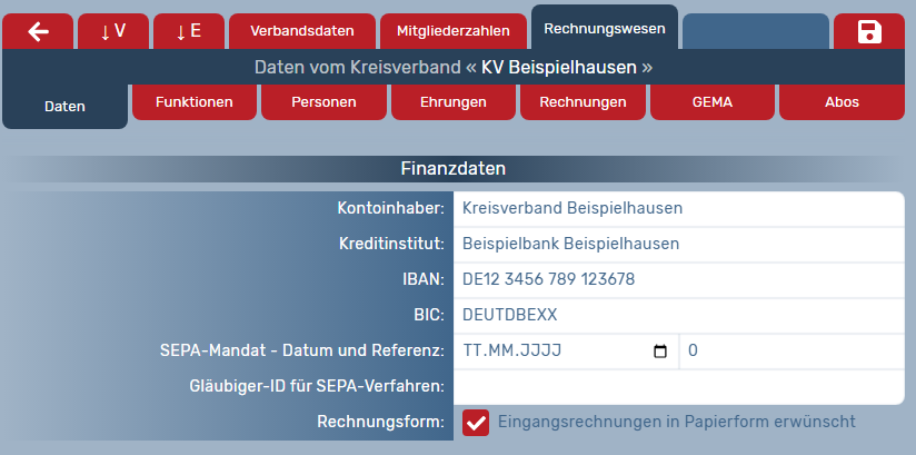 Hinweis: Auf Ebene des Mitgliedsverbands treffen Sie die Einstellungen, die sich auf Rechnungen an Kreisverbände beziehen. Auf Ebene des Kreisverbands treffen Sie die Einstellungen, die sich auf Rechnungen an Vereine beziehen.