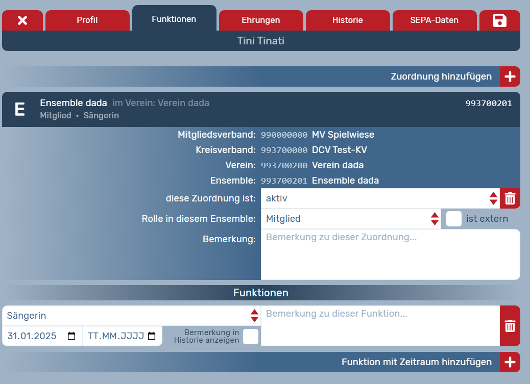 - Die Person ist als aktives Mitglied einem Ensemble eines Vereins zugeordnet (das gilt auch für die Rollen E-Administrator:in und E-Leser:in).