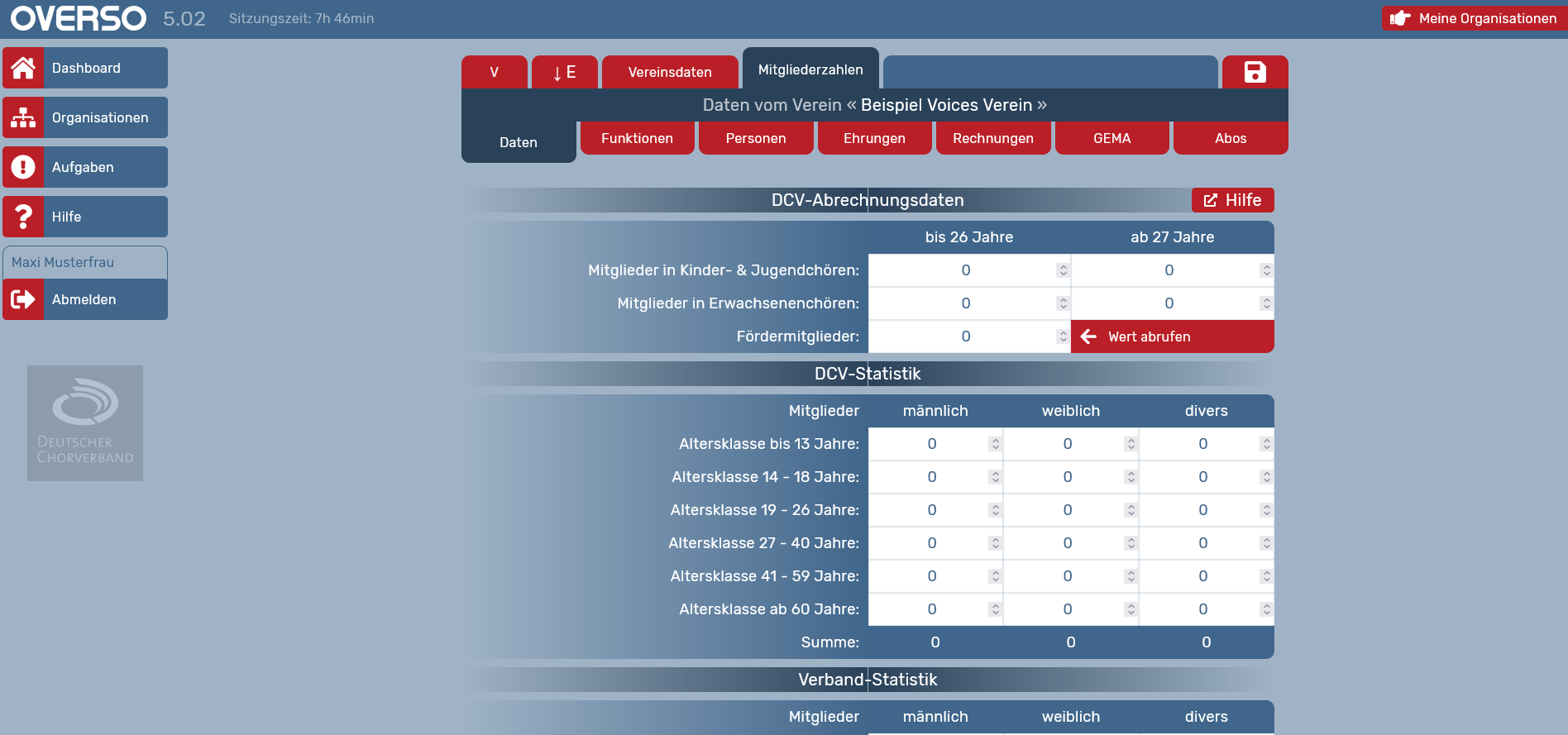 DCV-Statistik: Es wird das Volumen aller Ensembles erhoben, wer in drei Ensembles singt, wird auch dreimal gezählt (dient nicht zur Abrechnung).